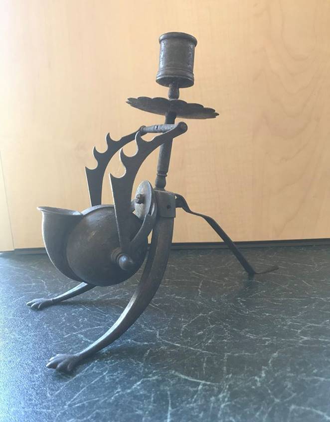 Found by Jerry Davis in the 1960s when a sewer pipe was being dug to service the new Gents toilet at the Fox and Goose Pub. Jerry commented that the inkwell must be from the original Fox and Goose Pub which was burnt down. It has faint patination which might be remnants of silver plating. It is made up of about 20 pieces including screws and pins. It is moulded with some stamping.